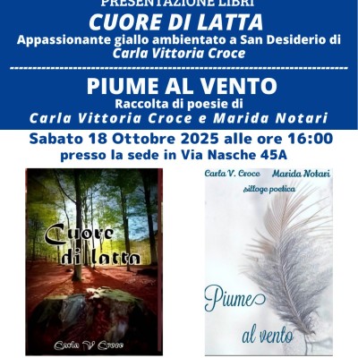 PRESENTAZIONE LIBRI "CUORE DI LATTA" E "PIUME AL VENTO